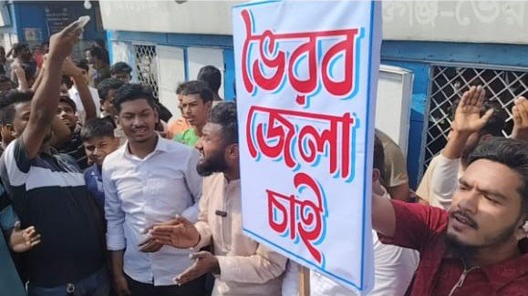 ভৈরব জেলা দাবিতে টানা আন্দোলন: তৃতীয় দিনে নৌপথ অবরোধ, ৪৮ ঘণ্টার আল্টিমেটাম দিল আন্দোলনকারীরা