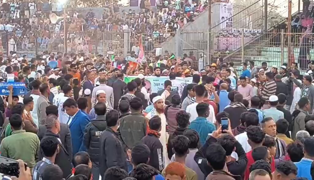 কিশোরগঞ্জ জেলার ভৈরবে বিএনপির চেয়ারম্যান তারেক রহমানের জনসভাকে ঘিরে উৎসবের আমেজ বিরাজ করছে। ভৈরব উপজেলার ভৈরব স্টেডিয়ামে জনসভা উপলক্ষে কানায় কানায় পূর্ণ মাঠ, চারদিকে নেতাকর্মীদের স্লোগান ও উচ্ছ্বাস।